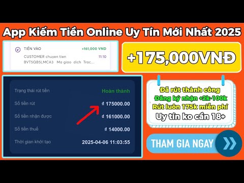 Kiếm Tiền Online 2025 | App Kiếm Tiền Online Uy Tín Mới Nhất Rút Luôn +175,000Đ Miễn Phí Về ATM