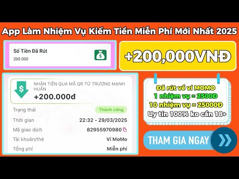 Kiếm Tiền Online 2025 | App Làm Nhiệm Vụ Kiếm Miễn Phí Mới +2500Đ/1Nhiệm Vụ Cực Dễ Rút Về MoMo