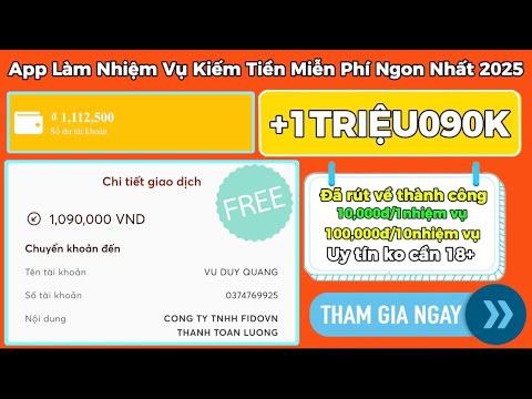 Kiếm Tiền Online 2025 | App Làm Nhiệm Vụ Kiếm Tiền Miễn Phí Ngon Nhất +10K/1Nhiệm Vụ +1090K Đã Rút