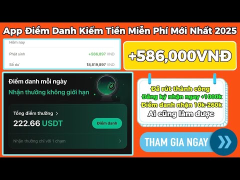 Kiếm Tiền Online 2025 | App Điểm Danh Kiếm Tiền Miễn Phí Mới Đăng Ký Nhận Ngay 1000K Miễn Phí