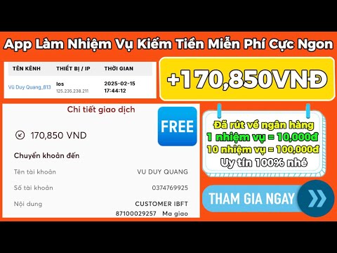 Kiếm Tiền Online 2025 | App Làm Nhiệm Vụ Kiếm Tiền Miễn Phí Ngon Nhất +1K/1Nhiệm Vụ +516K Rút MoMo